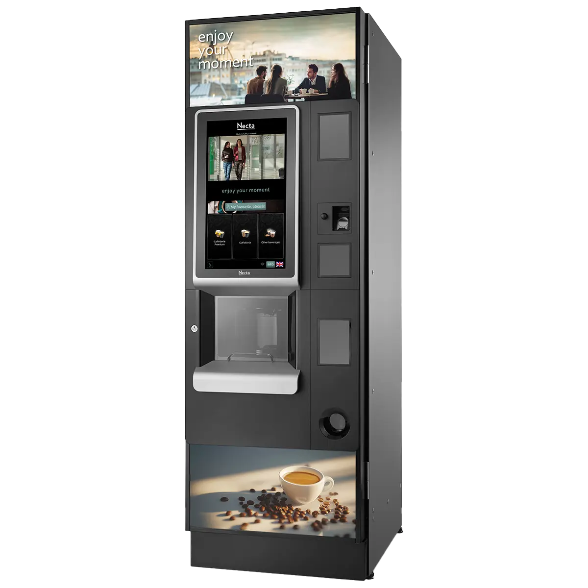 Este modelo está disponible en varias configuraciones —desde Espresso hasta Full Instant o Espresso con té en hoja— ofreciendo a los operadores la flexibilidad de elegir la configuración ideal para cada ubicación.